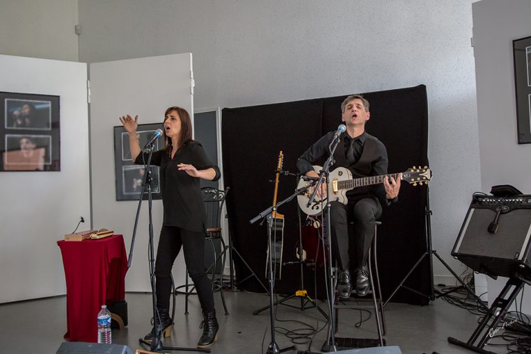 David à la guitare, tantôt swing, tantôt délicate accompagne Fabienne au chant et même au mélodica, elle nous vante ses produits avec une voix pleine d’énergie et de sensualité. Mais l’heure de la fermeture arrive et Monsieur Dame tire le rideau et sa révérence sous les applaudissement du public.