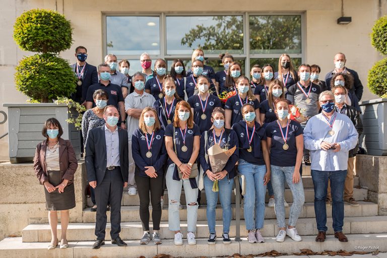 La réception s’est terminée par une photo de famille sur le parvis de la Mairie… en attendant la prochaine saison après l’été, avec une salle agrandie qui devrait enfin pouvoir accueillir un public conséquent, et donc les fameux matchs de coupe d’Europe.