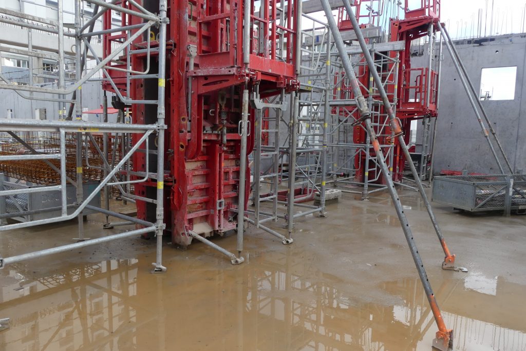 2 / En raison des conditions climatiques très humides depuis avril 2024, les ouvriers sont contraints de travailler avec des bottes de pluie. Même s’ils sont libérés de la boue depuis le mois d’octobre, ils doivent encore patauger dans plusieurs centimètres d’eau. Cela ne retarde pas le planning, le chantier est dans les temps, en revanche cela oblige à faire tourner en permanence une quinzaine de pompes qui traitent l’eau et la rejettent ensuite en partie dans le réseau urbain.
