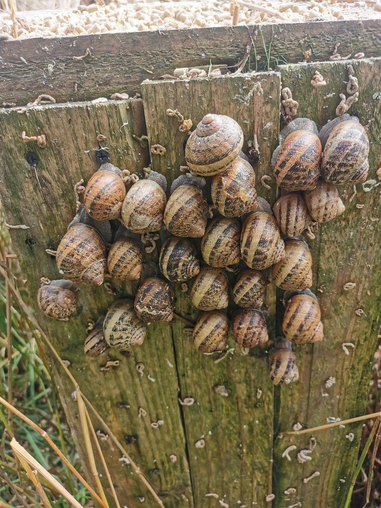 Au total, Marie-Odile Méchin élève 300 000 escargots. On peut trouver cela beaucoup, mais « ils ont de la place » garantit-elle. Et, étonnement, « ils s’agglutinent, je crois qu’ils aiment être ensemble » assure la productrice. « Ils sont dans des parcs en plein air couverts de planches comme des tipis pour qu’ils puissent s’abriter et clôturés par un petit filet avec bande électrique sinon ils se font la malle. » La « récolte » des escargots ayant atteint leur taille adulte idéale pour les déguster ne se fait qu’une fois par an, en septembre-octobre. Impossible d’en programmer d’autres car le reste de l’année il ne fait pas assez chaud.
