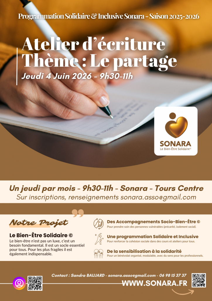 Prenez la plume et participez à l’un de nos ateliers d’écriture, un thème chaque mois. Des propositions d’exercices pour explorer, découvrir, approfondir et partager si le coeur vous en dit.