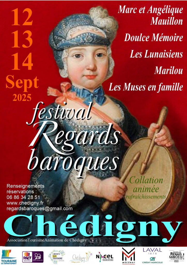 Les 12,13,14 septembre 2025, le « festival Regards baroques » se tient à Chédigny, au cœur d’un village de Touraine. Avec Marilou, Les Lunaisiens, Les Muses en famille, Angélique et Marc Mauillon, Doulce Mémoire… la programmation joue cette année sur les contrastes entre « la Fête » et « l’Intime », musique savante et musique populaire, airs de cours et chansons de bergers, « belles danses » et bal de village.