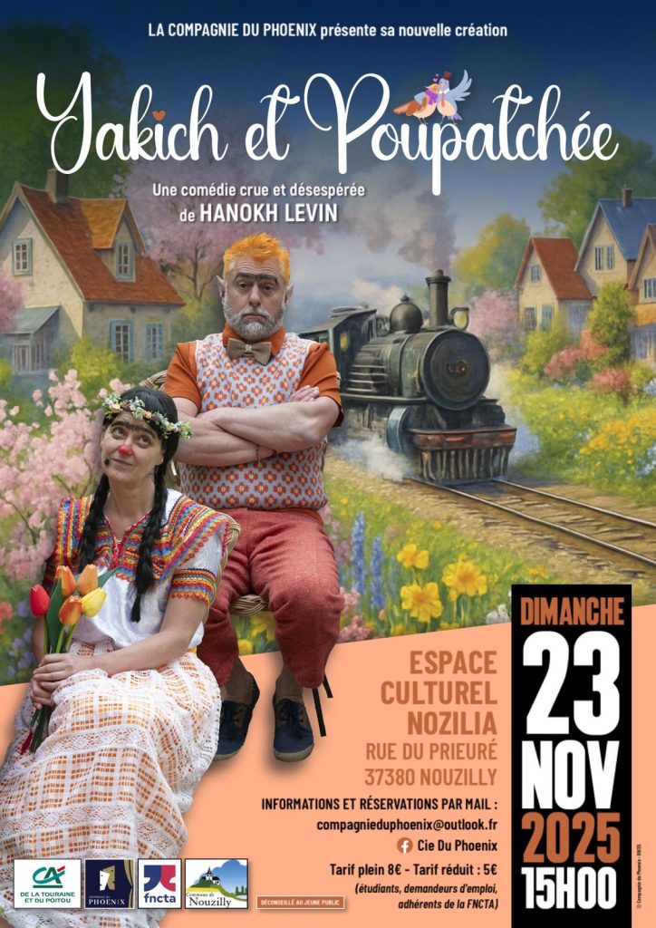 Yakich et Poupatchée – Pièce de Hanokh Levin – Présentée par la Compagnie du Phoenix Synopsis : Yakich et Poupatchée sont deux êtres pauvres et laids, en manque d’amour…. Un étrange marieur propose de les unir, mais les noces tournent au cauchemar burlesque…. Point de départ d’une course poursuite nocturne teintée d’une bouffonnerie cocasse et riche en catastrophes où l’on croise des personnages hauts en couleur. ! Et se posera la question essentielle : le mariage sera-t-il consommé ?