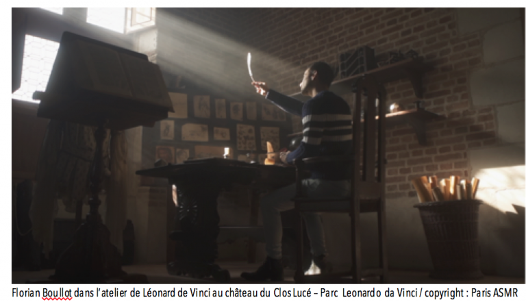 Fondateur de la chaîne Paris ASMR, créée en 2015 et riche de 240 000 abonnés, celui qui tient un cabinet de sophrologie découvre la dernière demeure de Léonard de Vinci et son parc dans un film de 8 minutes : « Des ateliers de Léonard à sa chambre, de la Chapelle Anne de Bretagne au cabinet de curiosités, du pont à double travée dans le parc au jardin Renaissance, le château du Clos Lucé et son parc est un monde en soi. Il résonne d’une multitude de bruits qui constituent son univers sonore : tourbillon dans l’eau, vent dans les feuillages, froissement des pages, frottement de la plume sur le papier, du pinceau sur le lapis-lazulis, caresses de la chatte Minette installée à demeure » souligne le monument.