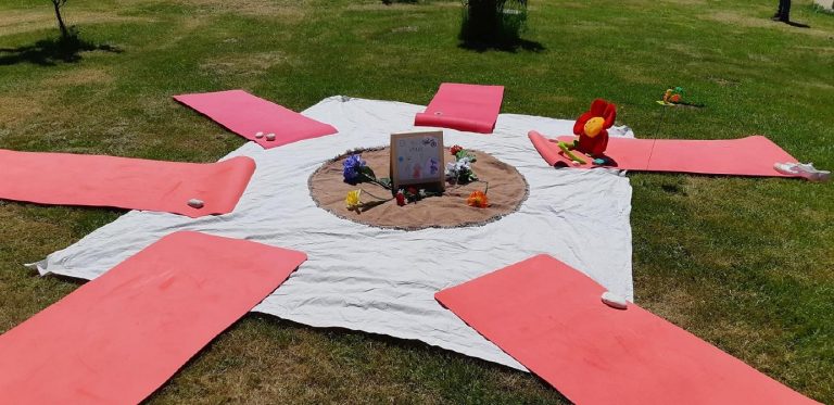 « Cela amène un autre contexte. A l’extérieur on prend l’air, on se concentre sur les bruits des oiseaux et les éléments naturels. On ressent le vent. La seule difficulté c’est que les plus petits peuvent être déconcentrés, regarder un peu partout au moindre bruit. A moi donc de créer l’endroit cocooning pour que ça se passe bien, de les regarder sans arrêt pour vérifier qu’ils sont toujours dedans. Si je les sens partir, je peux me rapprocher d’eux, faire une ou deux postures avec eux pour qu’ils reviennent dans l’enchaînement. »