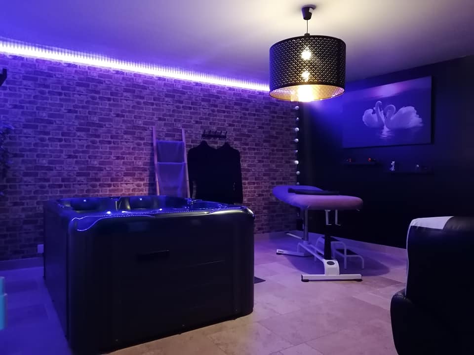 Pour mener à bien leur projet, ils transforment une maison de ville tout juste libérée par ses locataires. 1 mois de travaux intenses et quelques « aléas de livraison à cause du Covid » plus tard voici le résultat : 80m² de surface, une grande pièce de vie salon-séjour avec jacuzzi, canapé, table basse, cheminée électrique, cuisine toute équipée pour se préparer à manger, bougies, guirlandes, grand lit, fauteuil tantra (ou « canapé de lecture » si vous devez expliquer aux enfants à quoi ça sert) et des pétales de rose un peu partout.