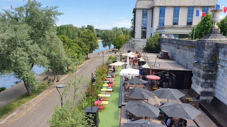 N°1 – Guinguette Tours-sur-Loire, La Principale : guinguette historique de la ville avec sa grande scène, son espace enfant, le restaurant Chez Ta Mère… Souvent bondée, elle a l’immense avantage d’offrir une vue panoramique sur la Loire. Il lui manque son grand saule pleureur abattu pour cause de maladie mais de nouveaux arbres ont récemment été plantés pour apporter de l’ombre sur les quais.