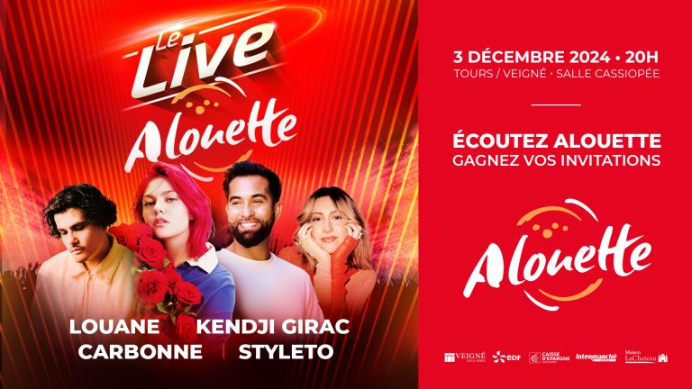 Cette semaine, tentez de gagner deux invitations pour le Live Alouette le mardi 3 décembre avec Louane, Kendji Girac, Carbonne et Styleto à Veigné !