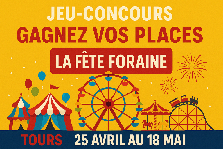 La Fête Foraine fait son grand retour à Tours du 25 avril au 18 mai 2025… et pour fêter ça, on vous gâte avec un super jeu-concours !