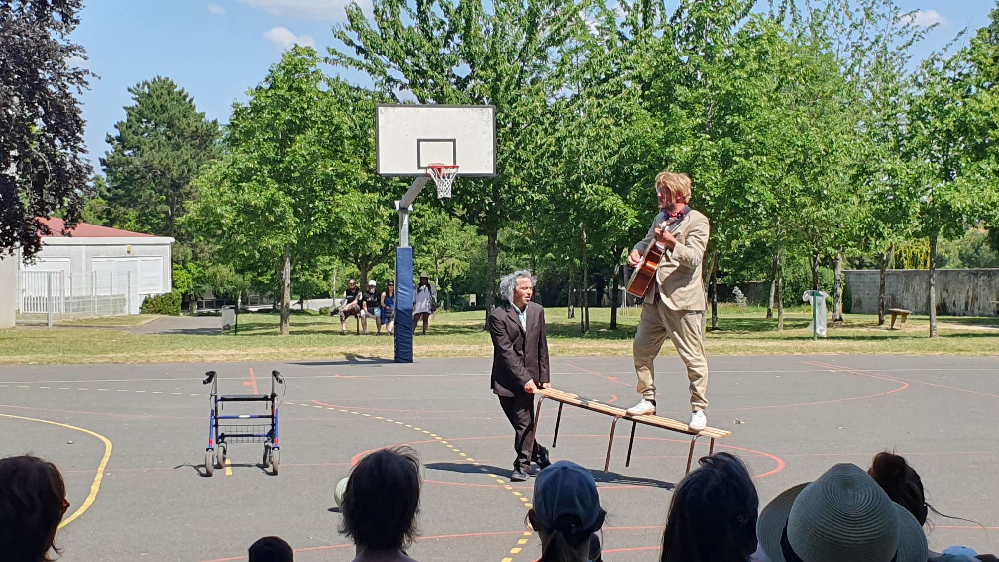 Créé en 2012, et toujours actuel, ce show aérien musical d’acrobaties avec de la pyrotechnie et le passage de superbes créations dans les airs (avion d’époque, voiture, réplique du Titanic) a enchanté la foule pendant plus d’une heure, sous une pleine lune exceptionnelle. On a aussi beaucoup aimé le discours du spectacle Chauve, en partie créé en résidence au 37e Parallèle de Tours-Nord, évoquant la peur de vieillir. Ou encore cet orchestre sous kiosque, recréant par exemple le son d’un violon avec des objets ne ressemblant pas du tout à cet instrument. Bref de la poésie, de l’émerveillement, du rire, de la danse, la fête aussi (mention spéciale au karaoké du Temps Machine) le tout sous un soleil radieux.