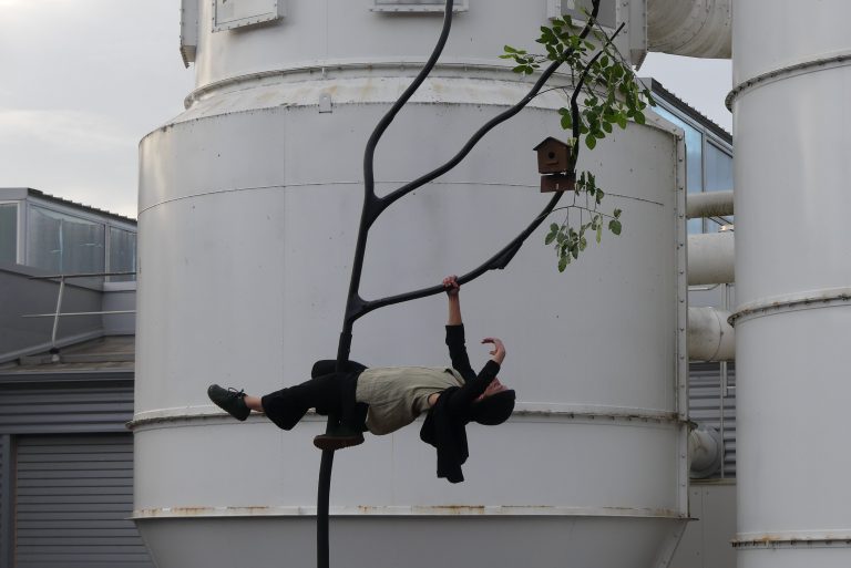 L’Espagnole installe un arbre un peu rachitique dans la cour du lycée D’Arsonval et elle évolue tout autour. Elle danse à son pied et invite une enfant à faire de même. Puis c’est une femme qui la rejoint. Pas un mot, juste une bande son piano. Puis l’artiste grimpe dans les branches. Et c’est seulement à la fin que l’on entend une voix nous conter l’enjeu de cette douce fable. Une conclusion que l’on ne spoilera pas mais qui s’avère tout aussi émouvante que la chorégraphie. Une représentation d’un romantisme singulier.