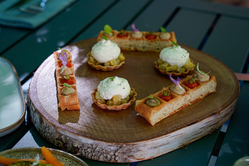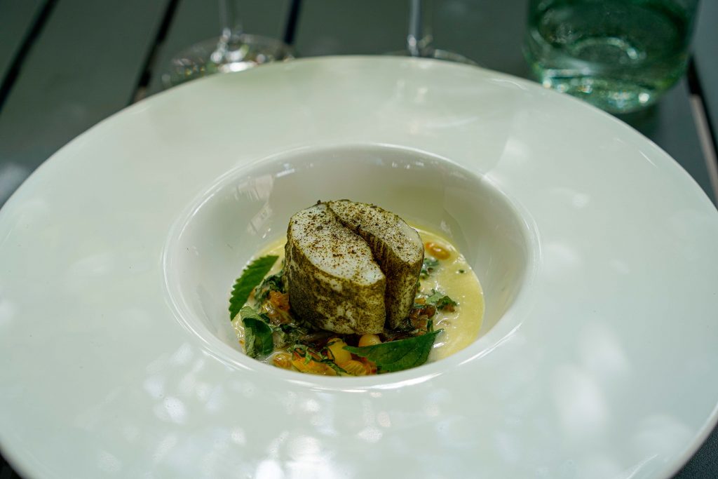 Le résultat : une cuisine qui veut mettre en valeur les produits locaux (feta tourangelle, céréales du berry, silure de Loire…) mais qui fait aussi la part belle aux fermentations ou au fumage. Pour pouvoir la tester dans toute sa splendeur, on opte pour le menu en 5 temps à 58€. Dès la mise en bouche, coup d’éclat avec une tartelette au fromage de chèvre, une gaufre garnie d’un duo coulis de tomate-crémeux de chou-fleur et d’une fouée maison garnie d’un cocktail végétal du plus bel effet.