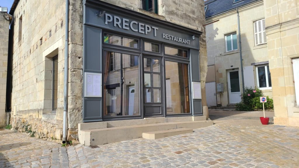 On voit le château de Langeais depuis la terrasse de Precept. Le restaurant de Thomas Ballester vient d’ouvrir Rue Dunois, au pied de l’église et à deux pas du centre-ville de la commune. Le précepte, c’est ce qui précède le concept. Et ici, il s’agit du premier établissement d’un jeune homme qu’on a déjà croisé dans quelques tables tourangelles et qui s’affirme ici en tant que chef, dans une salle aux notes de décoration végétales et contemporaines… avec quelques œuvres au regard parfois perturbant, mais surtout des sièges en velours confortable où l’on se love entre deux plats.