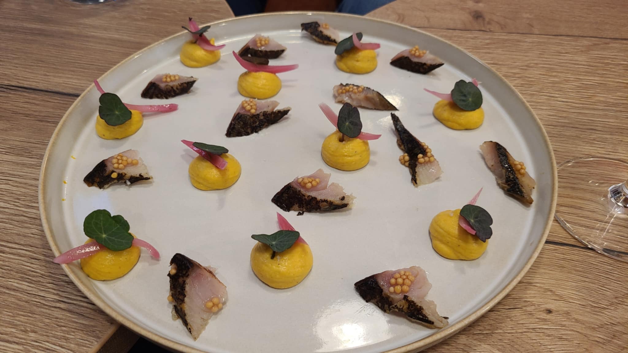 Si certains assaisonnements pourraient être plus poussés, on se délecte d’enchaîner les assiettes entre terre et mer, comme les premières St Jacques, ou les gambas dans leur brioche un peu dans l’esprit d’un lobster roll. Et en dessert, chocolat en plusieurs textures ou une pavlova gourmande et croustillante, en attendant prochainement une recette incorporant une création pépite : du caramel de butternut.