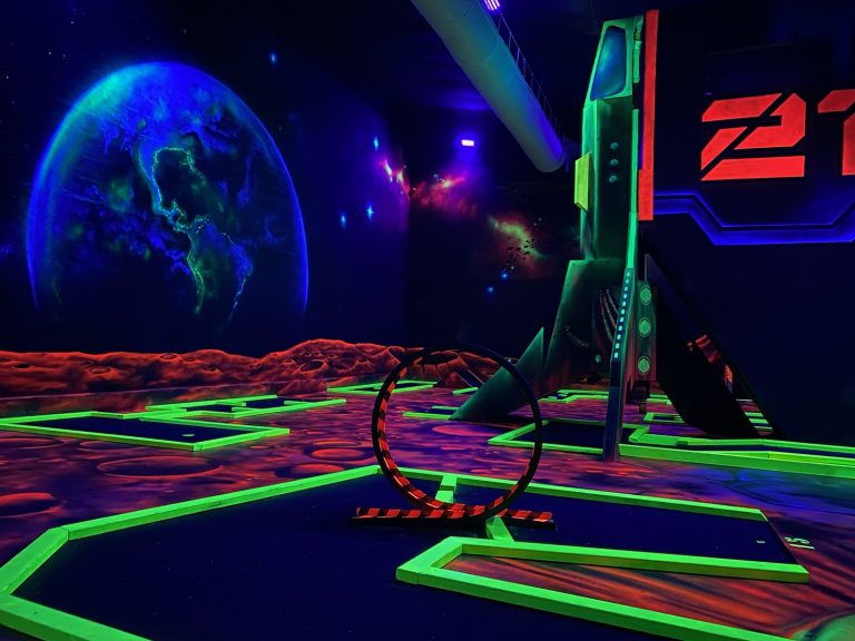 Asterogolf : Une activité totalement originale, découvrez ce mini-golf futuriste fluo en intérieur de 350m². Dans l’obscurité, par équipe de 6 joueurs maximum, munis d’un club de golf et de balles fluo, réalisez le meilleur score sur le parcours de 18 trous éclairés à la lumière noire.