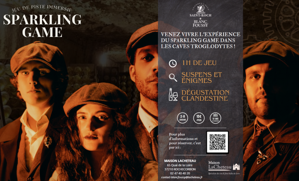 Vous pourrez également découvrir le Sparkling game, jeu de piste immersif sur le thème de la méthode traditionnelle et de la Maison Lacheteau avec des énigmes à résoudre dans les immenses caves troglodytes suivis d’une dégustation clandestine. »