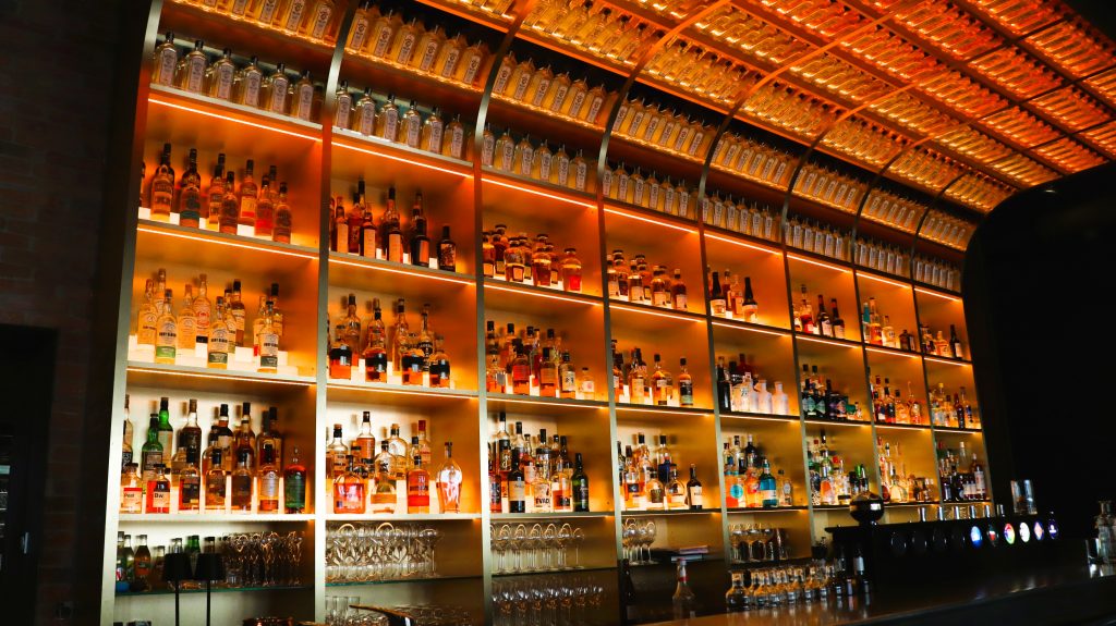 Quand on passe la porte du Blend & Shaker, la première chose qui marque est l’imposant bar éclairé et ses multiples bouteilles qui le mettent en avant.