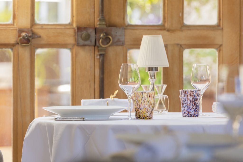 Ici, on vient pour une expérience globale. Cossue et intimiste. On s’installe confortablement dans des sièges fabriqués en France, autour de tables aux nappes blanches, dans des salons insonorisés, récemment rénovés. Ou sur la terrasse verdoyante aux beaux jours. Le service est aux petits soins grâce à une équipe expérimentée, comptant deux sommeliers. Et à partir de 6 personnes, on peut vivre un moment encore plus exclusif dans un salon privé.