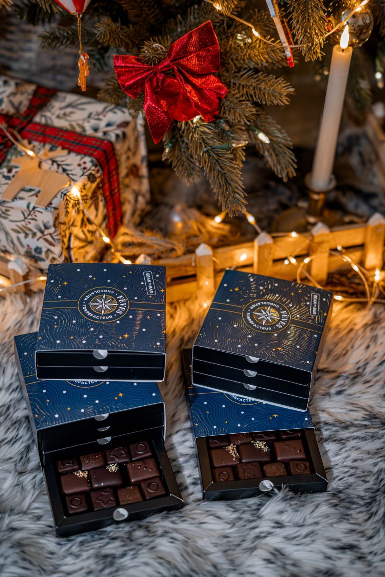 À l’approche des fêtes, les boutiques se parent de créations de saison : sapins pralinés, fritures de Noël, orangettes, ballotins variés (praliné maïs, caramel mou cannelle, praliné pistache, guimauve griotte)…