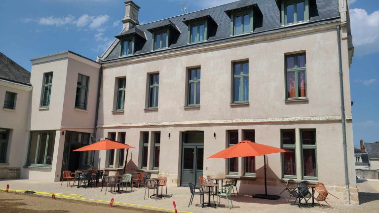 L’investissement total n’a pas été révélé mais il chiffre haut. La Maison Rabelais s’est notamment équipée d’un système de géothermie pour son chauffage hivernal et un rafraîchissement des locaux l’été (pas de clim’, donc). Les lodges seront même autonomes en énergie grâce à des panneaux solaires. Quant à la piscine extérieure, qui surplombe la cour et la terrasse, elle est chauffée à l’aide d’une pompe à chaleur, garantissant un fonctionnement de mai à octobre.