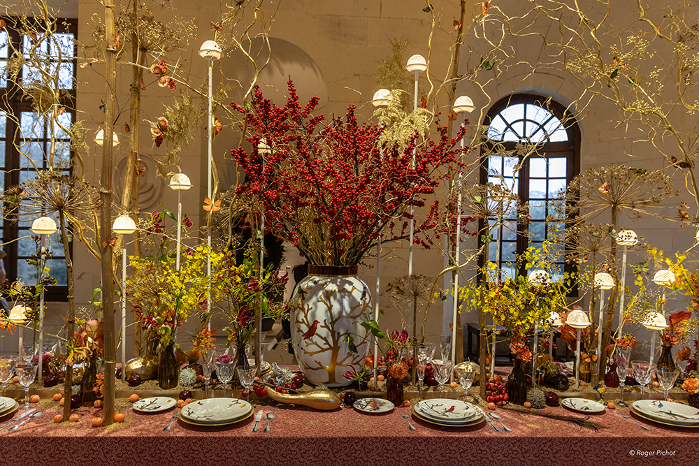 Au rythme de la visite, les références historiques nous rappellent le goût particulier de Catherine de Médicis pour les oiseaux, ce qui permet aux visiteurs de contempler de nombreuses espèces représentées à la fois dans les compositions et sur les motifs des produits de la maison Bernardaud, que les visiteurs pourront admirer sur la table monumentale, dressée dans la grande galerie enjambant le Cher.