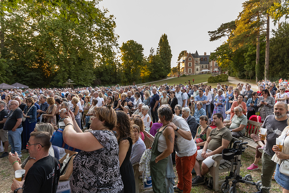 Tout au long du spectacle, il se dévoile un peu (souvent avec humour), il chante son bonheur d’être sur scène dans un lieu aussi magnifique que le Clos Lucé.