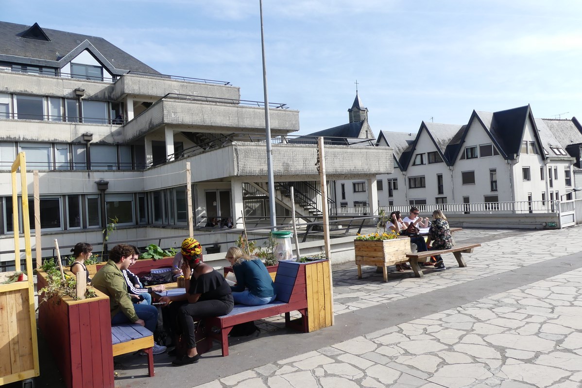 Le résultat : un premier chantier de 10 jours a été organisé en mai pour créer une structure en bois. L’université n’a quasiment rien acheté, elle a récupéré des palettes auprès d’Entraide et Solidarité et a financé de la formation auprès de Paul Huguen (un des artisans du bar Le Court Circuit) pour que les étudiants et les personnels puissent apprendre au fil des opérations : « c’était intéressant car au départ certains avaient peur d’utiliser une scie sauteuse craignant de se couper les doigts. Finalement, personne n’a été blessé » se remémore Katrina Kalda, confortablement installée sur l’un des cubes de bois qui constitue le mobilier. Face au succès de cette première expérience, les travaux ont repris en ce mois d’octobre et sont sur le point de s’achever.