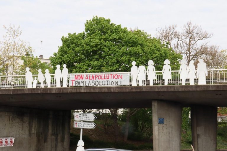 L’installation des mannequins de cartons à cet endroit, nœud automobile avec les boulevards et avenues citées plus haut mais aussi l’échangeur de l’A10 de Tours-Centre, n’avait rien d’aléatoire d’ailleurs. « C’est l’endroit le plus pollué de l’agglomération » indique Gilles Moindrot du collectif.