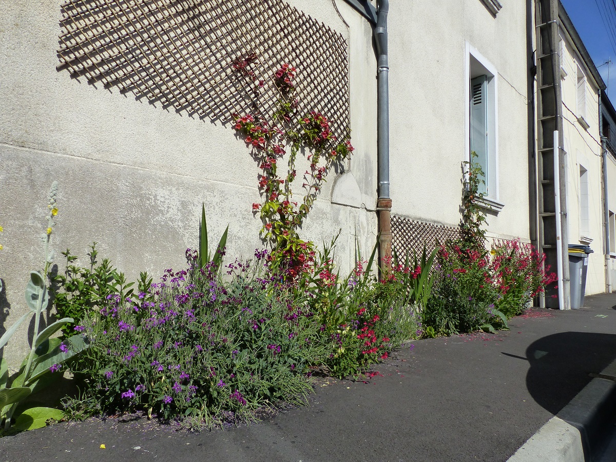 Si on en fait la demande, la mairie vient creuser une petite fosse au pied du mur. Et peut même fournir des plants pour l’agrémenter. Cela fait donc un petit bout de terrain à entretenir pour que la nature prolifère en ville. La surface de trottoir est légèrement amoindrie mais – en général – il reste assez de place pour passer avec une poussette ou un fauteuil roulant (si l’espace n’est pas encombré par des poubelles ou d’autres choses).