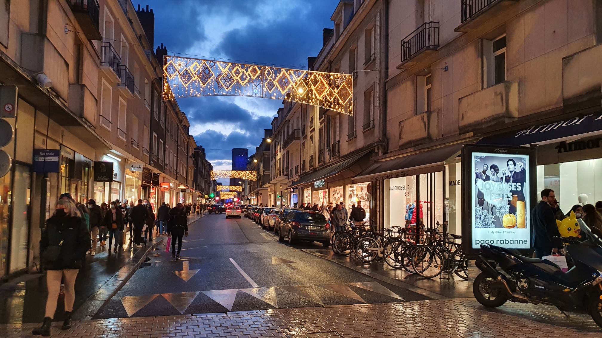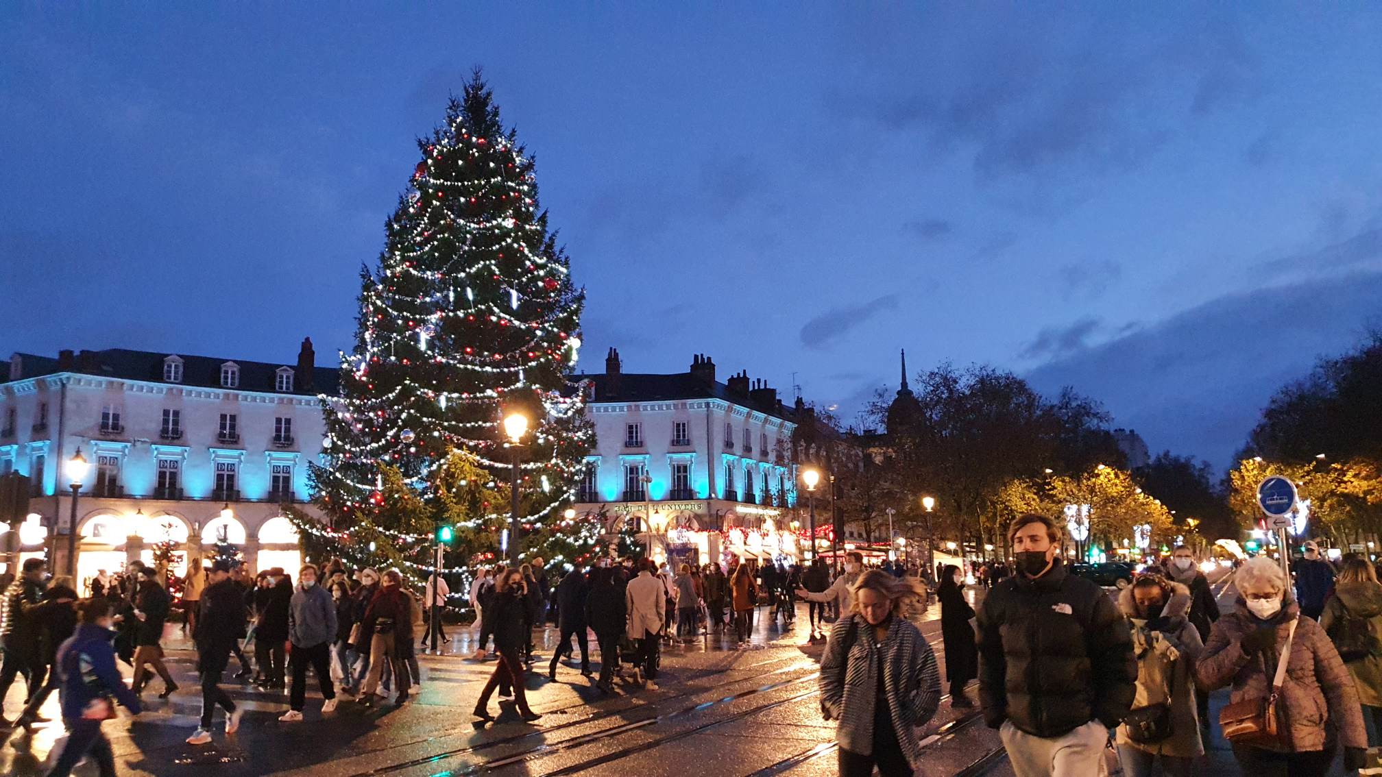 Il fait froid et on croise plein de gens les bras remplis de sacs dont le contenu terminera probablement emballé au pied d’un sapin… Pas de doute, la période des fêtes de fin d’année est là. Et quand le ciel s’assombrit, les rues se mettent à scintiller. Couleurs blanc et or cette année pour le décor de la ville de Tours qui renoue avec la tradition du sapin géant Place Jean Jaurès après son absence remarquée de 2020. Le spécimen de 18m embellit la Place Jean Jaurès et suscite l’émerveillement des petits et des grands…