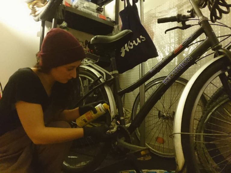“Quand on n’a pas le pied dedans on ne se rend pas compte à quel point c’est hyper important de huiler sa chaîne, de gonfler ses pneus régulièrement avec la bonne pression… Ça fait la différence et rares sont les personnes qui le font. Parfois les gens dépensent des sommes incroyables pour la réparation parce qu’elles n’ont pas fait les bons gestes. Par exemple ma sœur qui connait mon parcours est venue me voir parce qu’elle n’arrête pas de crever. Son vélo c’était une cata !”