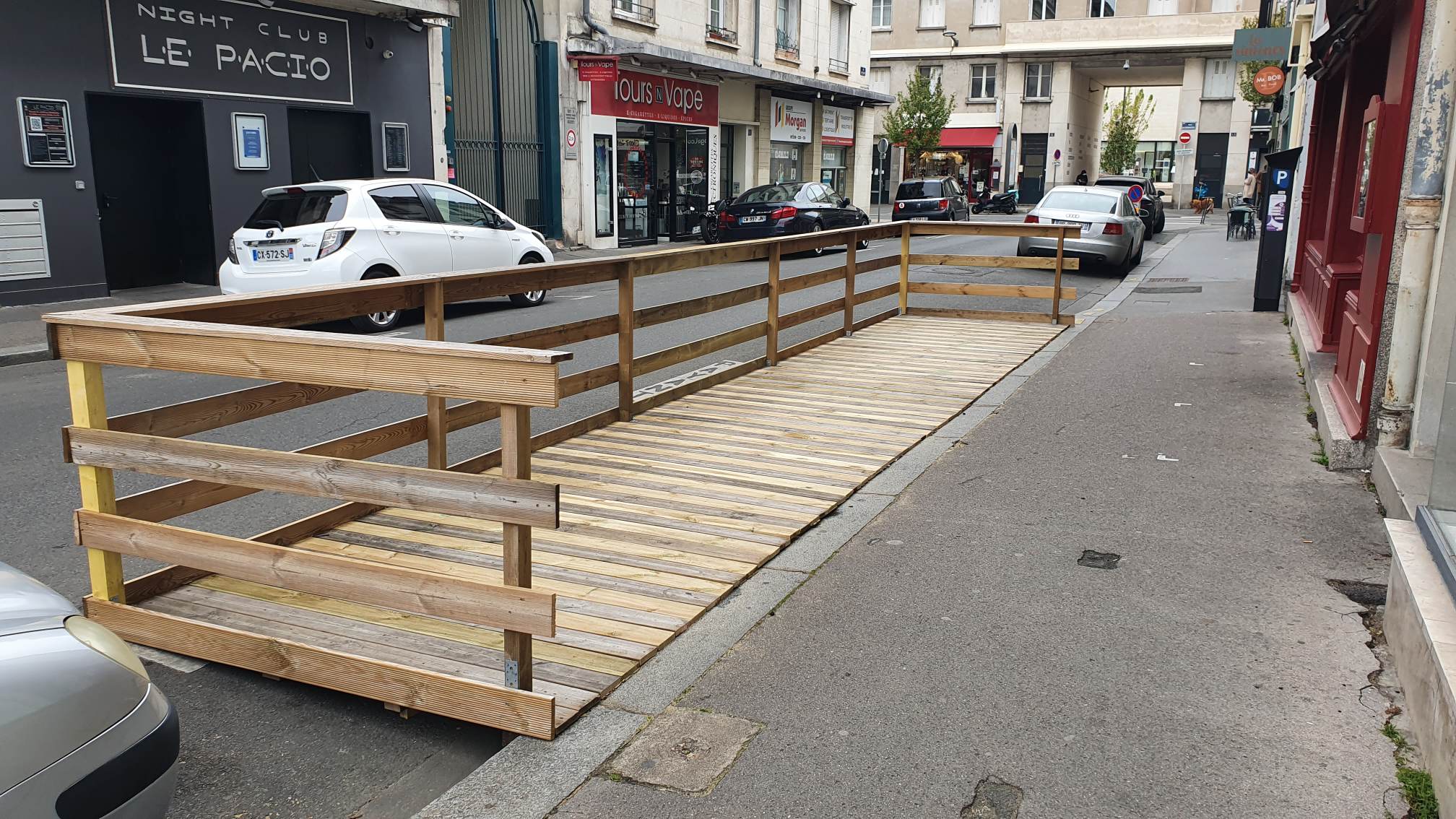 Des bruits de visseuse Rue de la Scellerie… Des planches toutes neuves près de la Place de la Résistance… Depuis ce vendredi 1er avril, certaines places de parking du centre-ville de Tours ont été supprimées pour accueillir des structures de bois, toutes situées devant des bars et des restaurants.