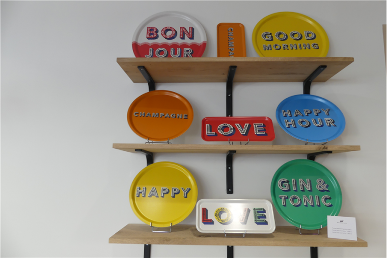 Au total, Maison Aur propose une dizaine de marques, toutes européennes, la fabrication des produits étant essentiellement réalisée sur le vieux continent (c’est un des premiers critères de la commerçante, avec la volonté de proposer des produits pas ou présents à Tours). On trouve donc des assiettes, des verres, des plateaux aux couleurs flashy, des lampes et beaucoup de verre, voire de verre soufflé, Aurore Chabassol étant très attirée par ce type de design (c’est aussi une fan de vases).