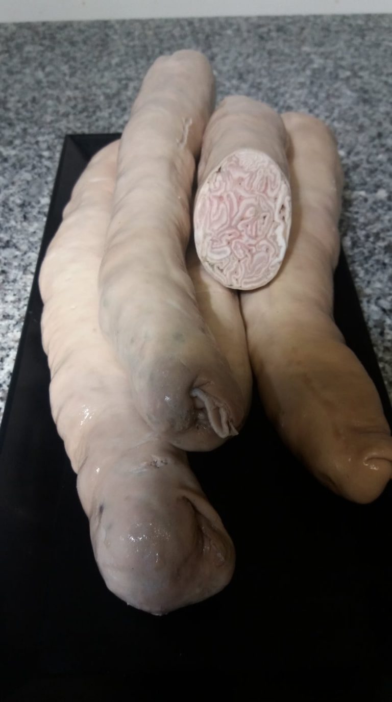 Pour rappel, pour l’andouillette à la corde, la triperie fraîche est nettoyée, coupée en longues lanières et tressée autour d’une corde. Les andouillettes sont ensuite assaisonnées puis enroulées à l’aide de la corde. Au poussoir, on incorpore directement l’andouillette préalablement assaisonnée dans le boyau, à la main ou à la machine.