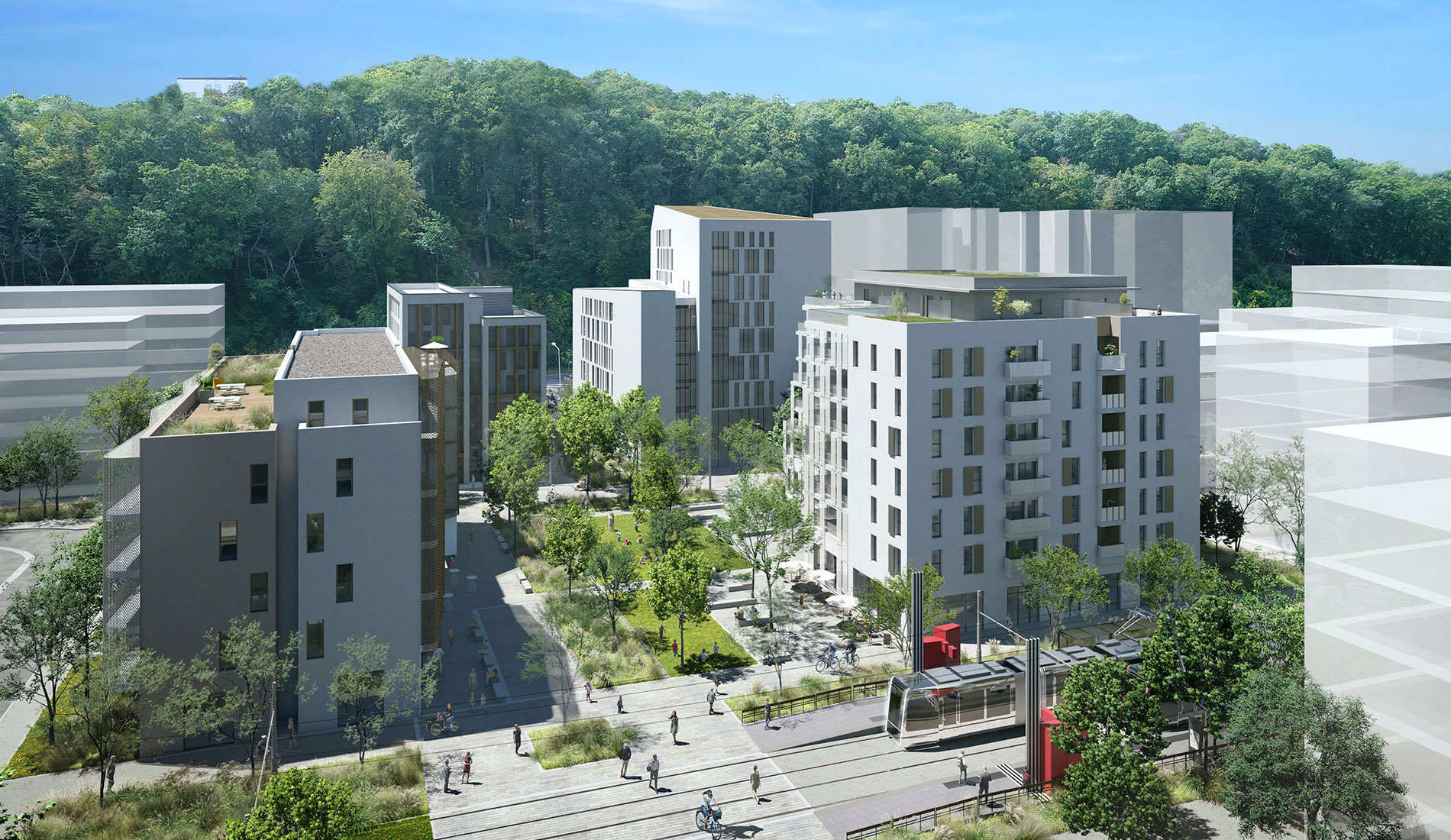 Au total c’est 46.090 m2 de surface de plancher qui seront reconstruits dans des bâtiments allant de R+3 à R+8. 453 nouveaux logements dont 210 étudiants verront le jour, ainsi que des bureaux et commerces en rez-de-chaussée (1.500 m2). Enfin, La ligne B de tram devrait passer au cœur du nouveau quartier.