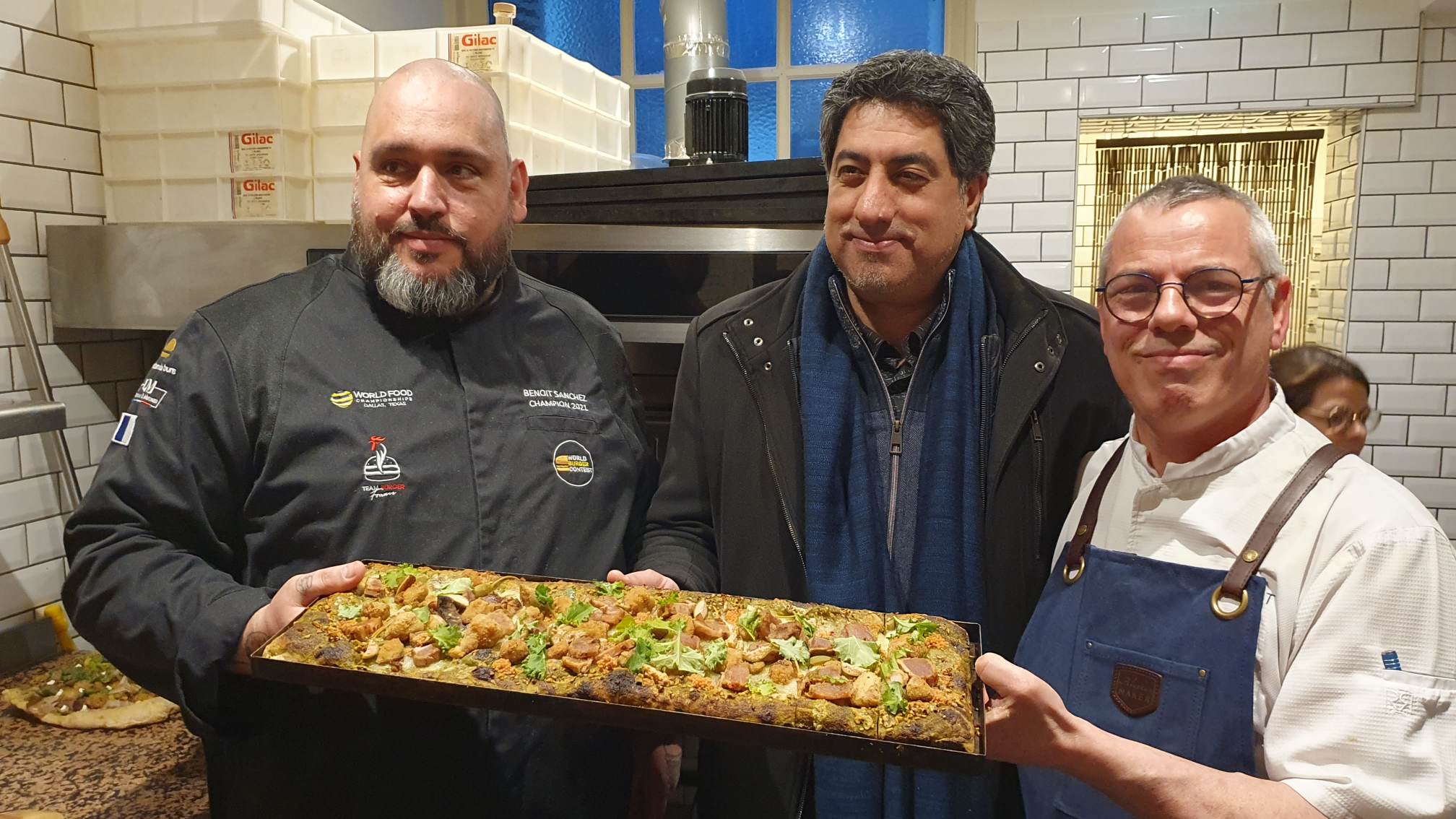 Avant de retourner outre-Atlantique pour remettre sa médaille d’argent en jeu, le cuisiner aux deux établissements se lance dans un nouveau défi : la pizza. Et pas tout seul. A l’occasion du Salon du Snacking de Paris il s’allie avec son ami Gilles Hemart (Les Gens Heureux et La Tratt) pour un challenge consistant à créer une pizza créative en duo (un candidat fait la pâte, l’autre s’occupe de la garniture – et ils n’ont pas le droit de s’aider, à part à la fin.
