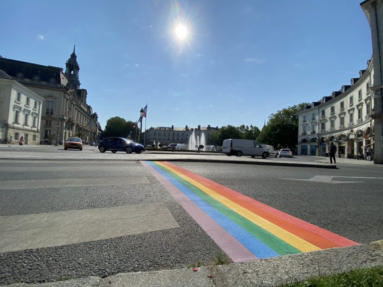 Ce jeudi 08 juin, les Tourangeaux ont pu découvrir l’installation de quatre passages piétons particuliers sur la place Jean Jaurès, tous aux couleurs LGBTQI+ (Lesbienne, Gay, Bisexuel٠le, Transgenres, Queer et Intersexe). Cette initiative de la part de la ville de Tours intervient à quelques jours de la Marche des Fiertés tourangelle du 17 juin et après 6 actes de vandalisme du Centre LGBTI Touraine.