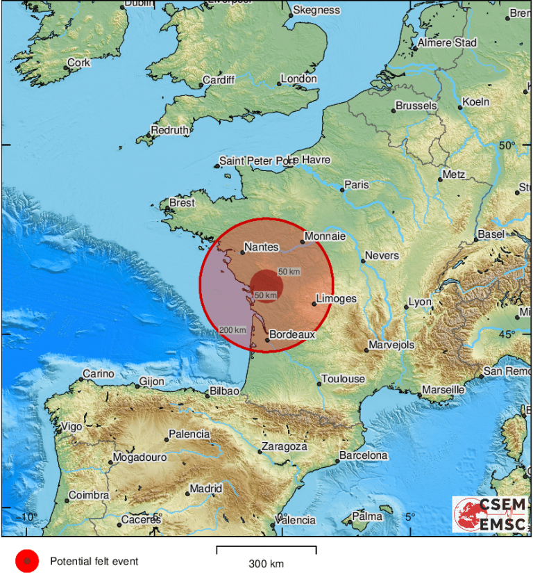 Les sites de surveillance sismique ont immédiatement publié des cartes : leurs premières informations évoquent un séisme de magnitude 5,2 ou 5,5 sur l’échelle de Richter, soit une secousse conséquente. L’épicentre serait situé au milieu d’un triangle reliant Niort, La Rochelle et Fontenay-le-Comte. L’onde sismique remonte jusqu’en Indre-et-Loire, confirmant les témoignages. Ces informations sont encore parcellaires et à confirmer.