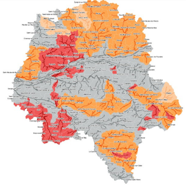 Par ailleurs, la Bourouse, la Veude et les ruisseaux de Roche, de la Muanne, d’Azay sur Cher, de la Coulée, des Vallées, d’Aubigny, du Vieux Cher, de Parçay, de Cléret, de Rigny, de la Bresme, de la Fontaine Ménard, de la Roumer et du Ruau de Panzoult passent en situation de crise, soit le niveau le plus élevé. Les mesures ci-dessus sont valables et même renforcées puisque les agriculteurs ont interdiction totale d’irriguer, interdiction totale de lavage des véhicules sauf impératif sanitaire, interdiction totale de remplissage des piscines… Les potagers peuvent encore être arrosés après 20h et avant 8h du matin.