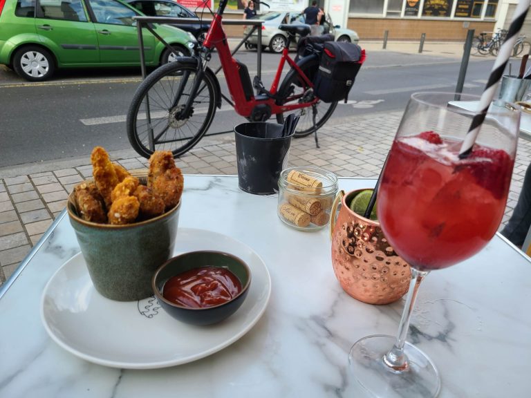 L’adresse de la Place Gaston Paillhou ajoute à cela des originalités qui font du bien, en l’occurrence des cocktails autour du vin dont un Tutu Mule, variation du célèbre Moscou Mule avec blanc (du chenin), sirop de fleur de sureau, ginger beer, citron vert et menthe fraiche (8€50). Pour le même prix on s’est régalé avec un Pink Wine soit crème de framboise, un coteaux de la Loire moelleux, citron vert, gingembre et framboises. Quant à la sangria au vin ligérien elle est à 13€ les 50cl.