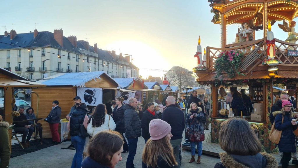 Résultat : dans l’après-midi, les allées du Marché de Noël Boulevard Heurteloup débordaient de monde. Idem pour la Rue Nationale, sur les côtés comme au milieu sur les voies du tramway. Il y avait la queue pour les stands de vin chaud, et déjà du monde pour tester le bar à cocktail éphémère de la Place Anatole France avec son étage offrant une vue sur la Loire. Parfait pour un après-midi hivernal avec grand soleil. La patinoire roller a également connu une belle affluence.