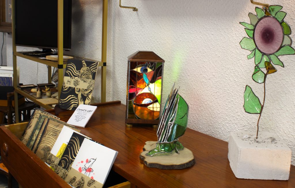 Dans ce magasin, le collectif Cinquini a souhaité « varier les formes d’art pour créer un ensemble convivial, où les pièces se parlent ». Les objets exposés sont souvent des pièces uniques, parfois même rares. Les céramiques d’Estelle Delmas et Marie-André trônent ainsi sur des tables et des étagères, aux côtés des bijoux éthiques d’Eugénie Leroux (présente avec sa collection les vendredis, les samedis et les dimanches) ; des créations en vitraux de Solène Caillat ; des illustrations et des carnets de Ma2line ; des bijoux, décorations et sculptures en bois de Thybault Girault ; des mobiliers et objets de décoration en tissage de Ghislaine Cinquini ; et des bijoux composés de pierres énergétiques d’Élodie. Kévin Carcelen propose quant à lui du mobilier et de la décoration datant du XXe siècle.
