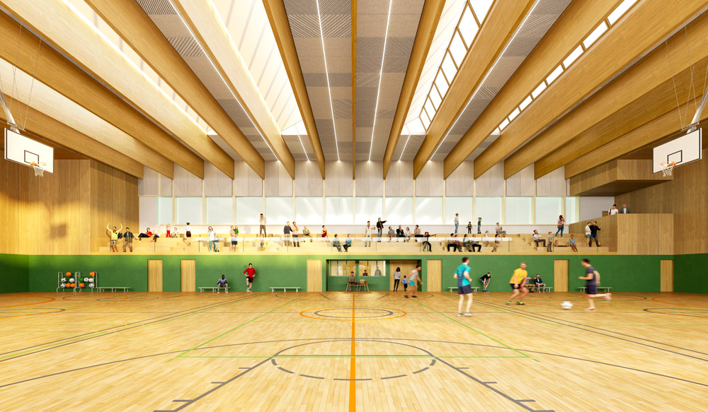 L’idée : réhabiliter le gymnase qui accueille parfois des matchs de sports collectifs mais surtout des séances de gymnastique. En supplément iil y aura un gymnase dit omnisports (basket pour le TBC, handball, volley, badminton…) avec une salle de musculation et une tribune de 250 places pour faire venir du public. Le tout « bénéficiera d’un bel éclairage naturel, chaleureux et convivial. Une piste d’athlétisme scolaire, un terrain de futsal couvert et deux terrains extérieurs de basket seront en accès libre (hors temps scolaires) » indique Emmanuel Denis.
