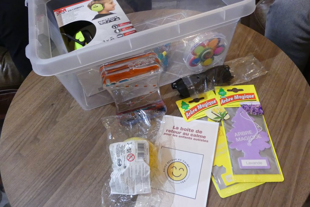 Son projet consiste donc à déployer des boîtes « de retour au calme » dans un réseau d’établissements partenaires. A l’intérieur on trouve un casque anti-bruit, une balle en mousse ou encore des petits sapins désodorisants que l’on accroche au rétroviseur. Des objets connus pour faciliter l’apaisement des personnes autistes « avec lesquels les familles sont habituées à travailler » assure Adeline Ressault.