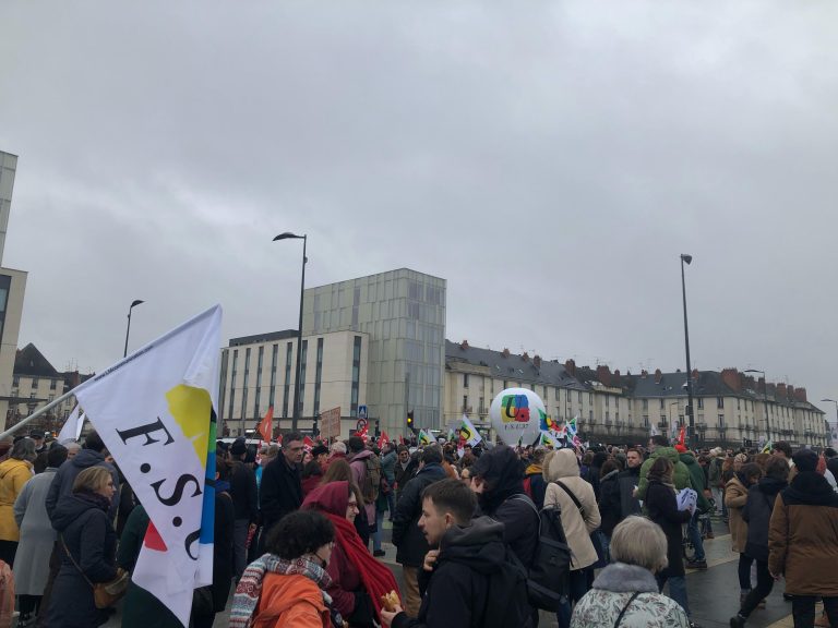 Côté syndicats, la FSU (Fédération Syndicale Unitaire) menait le cortège, suivie de la FNEC FP (Fédération nationale de l’enseignement, de la culture et de la formation professionnelle). “Les élèves et les profs sont sacrifiés par les dernières mesures du gouvernement et du ministère de l’éducation nationale” commente un syndicaliste de la FNEC FP. La CGT (Confédération générale du travail) participait également à ce défilé.