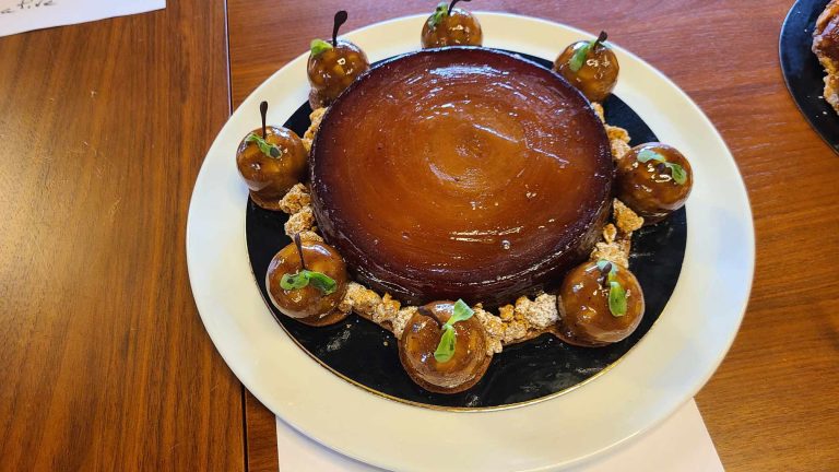 On ne va pas se plaindre, mais déguster autant de mets en moins de 2h c’est un sacré exercice. On prend de tous petits bouts, on fait des pauses et on boit beaucoup. Un peu comme quand il avait fallu être juré du concours national de la meilleure galette des rois fin 2022 à Joué-lès-Tours.