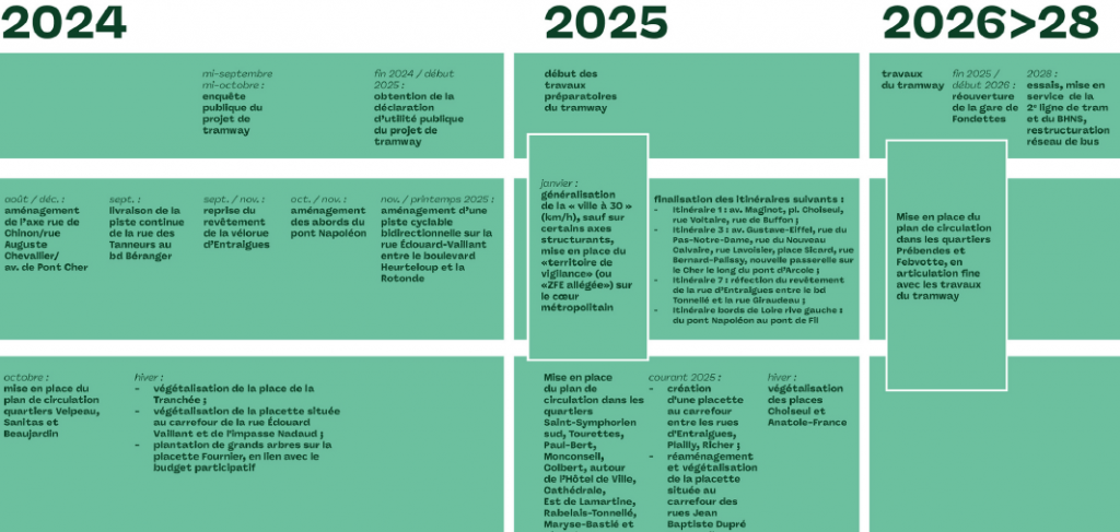 Les quartiers des Douets, de Velpeau et de Beaujardin seront les premiers à voir leur circulation chamboulée. Ce sera d’ici fin 2024, après les grands travaux prévus sur l’A10 à la rentrée puis un chantier sur la Rue Edouard Vaillant. Dans tous les cas, la municipalité promet des concertations avec les habitants et des « ajustements » si nécessaire. Mais son idée est quand même de mettre en place des schémas définitifs. Précision : les chantiers sont chiffrés à 300 000€ à la charge de la mairie. Ils se feront parfois en même temps que les grands travaux du tram mais seront pensés pour s’organiser en parallèle, pour ne pas paralyser tout le trafic.