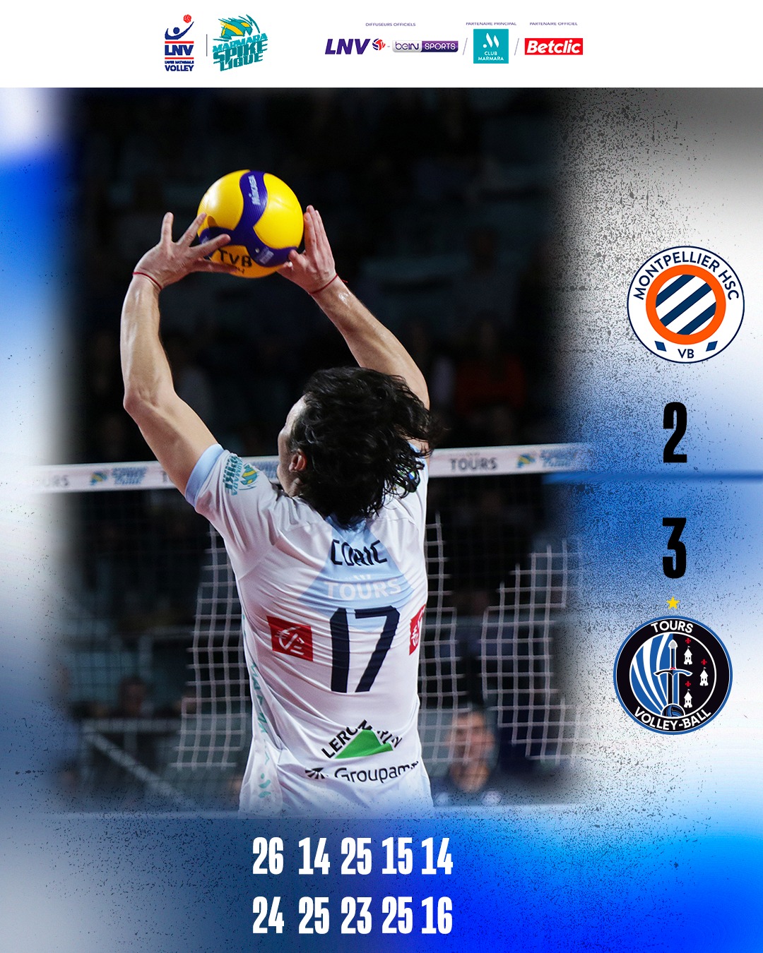 Après avoir gagné les 2 premiers matchs à domicile, le champion de France en titre est allé s’imposer 3-2 ce samedi chez les Montpelliérains. Les Tourangeaux sont donc dans le dernier carré de la MSL où ils affronteront Chaumont. Ce sera dur car les Haut-Marnais ont fini en tête de la saison régulière, le TVB devra donc débuter à l’extérieur.