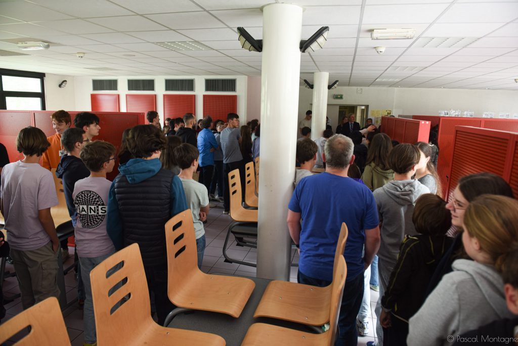 Après un délai d’alerte un peu long (20 minutes) entre la préfecture et l’académie, une sonnerie et un message spécifique au type de catastrophe est délivré dans les hauts parleurs de l’établissement. Rapidement près de 500 élèves sont répartis dans 6 salles avec une procédure pour les éloigner des fenêtres afin d’éviter des dangers.