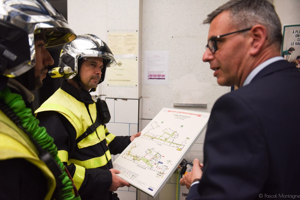 A quelques kilomètres de là, à Tours-Centre, la cellule de crise de la préfecture coordonne l’ensemble des interventions. Deux engins des pompiers arrivent alors pour sécuriser l’établissement, en vérifiant sa solidité face aux intempéries et vérifiant les dégâts, bien évidemment absents dans une simulation. L’opération aura duré une heure, entre le déclenchement de l’alerte, l’arrivée des pompiers, et la vérification de l’absence de dangers.